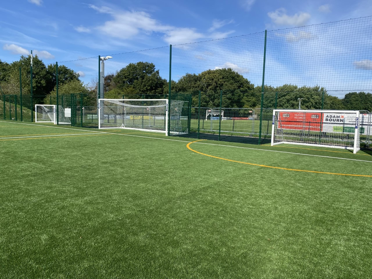 The six-a-side pitches both have 12ft x 6ft goals, the 9-a-side pitch has ¾ size 21ft x 7ft goals, and there is also a full-size 24ft x 8ft goal available for shooting drills.